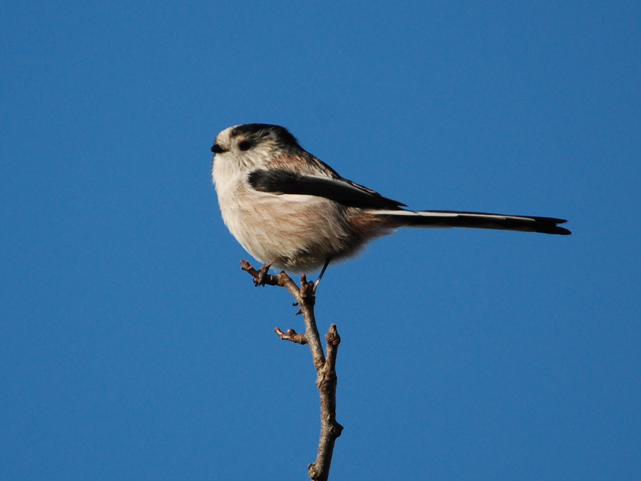 Long tailed tit - tiny stub of a bill and very long tail. |