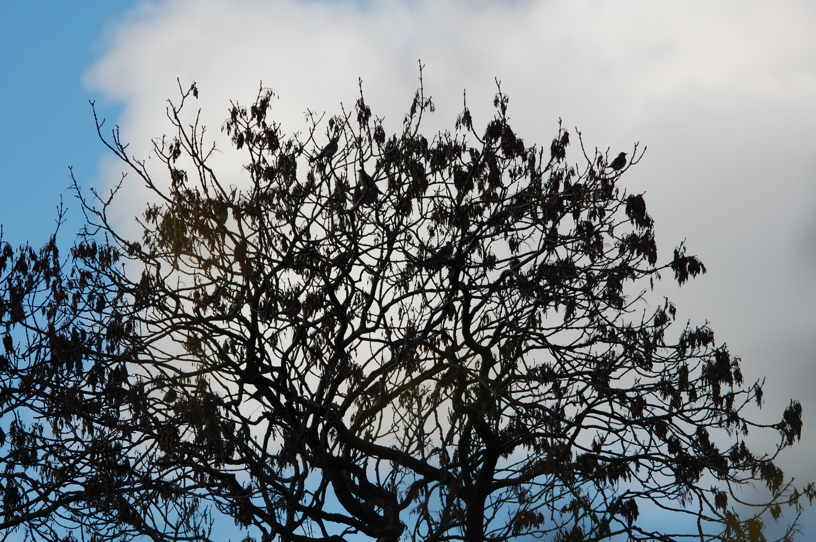 You can't see too well from this photo, but there are 20 Fieldfares all standing very still and silent in this tree |
