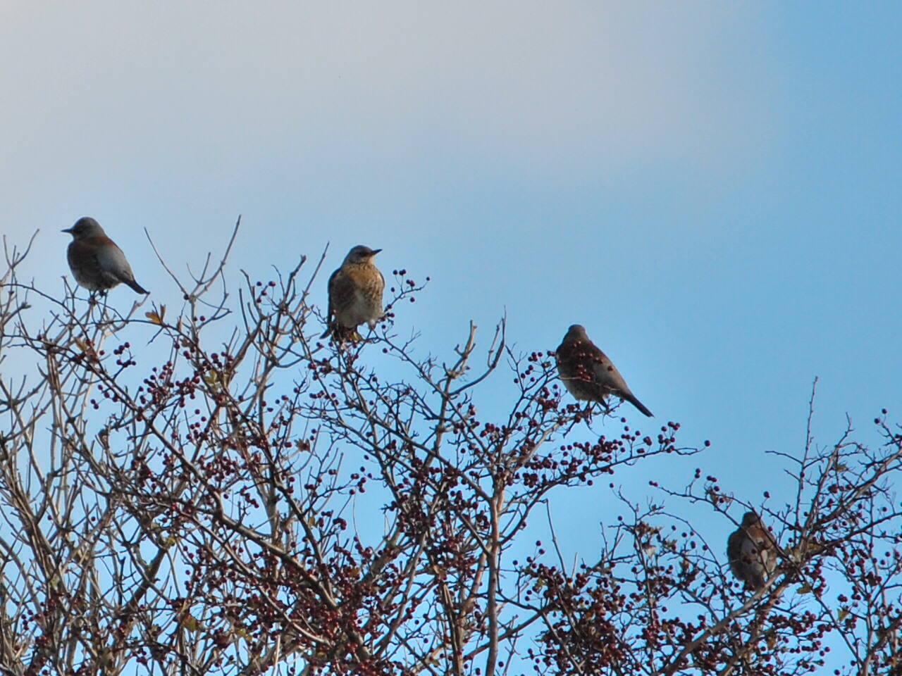 4 Fieldfares, in a different tree, again, they were still for about 10 minutes. But, wouldn't you be if you'd just flown from Siberia? |
