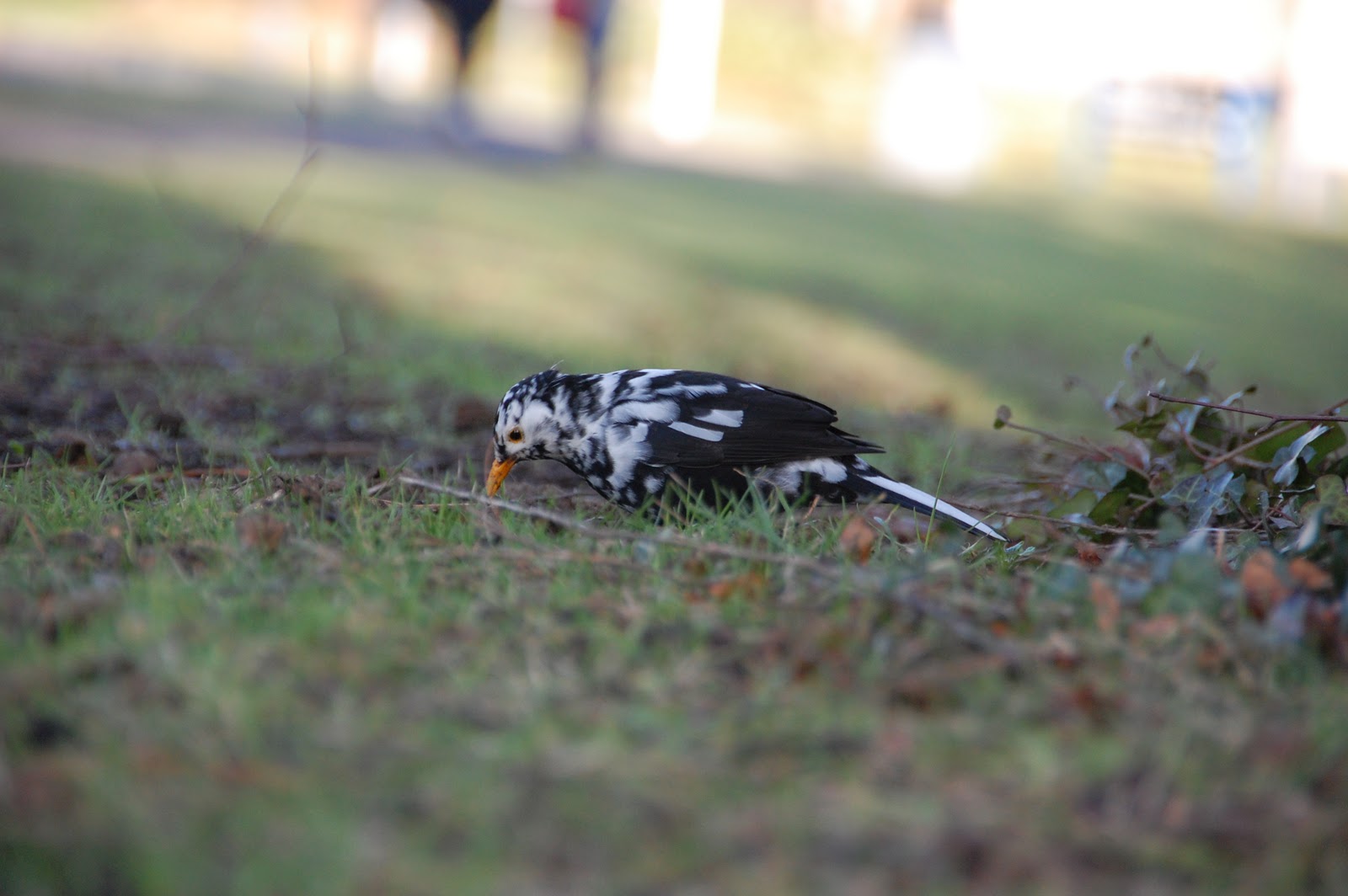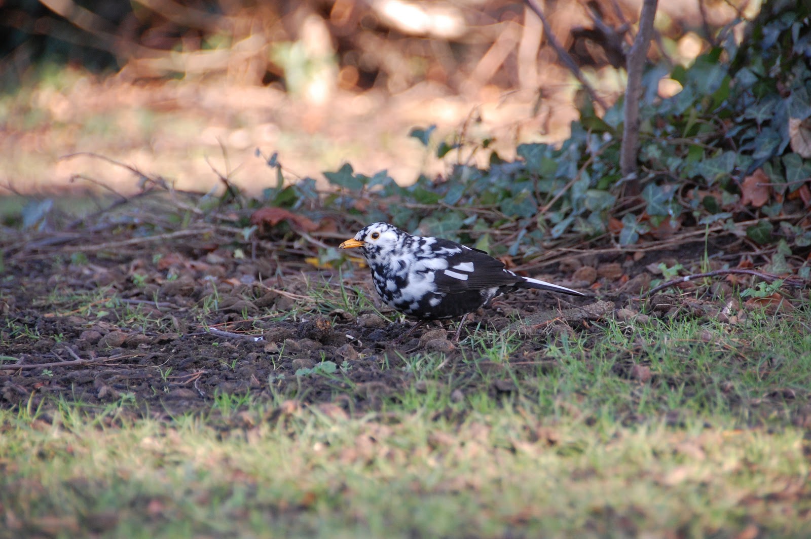 | Leucistic Blackbird, back of AIB, UCD, Dublin. |
