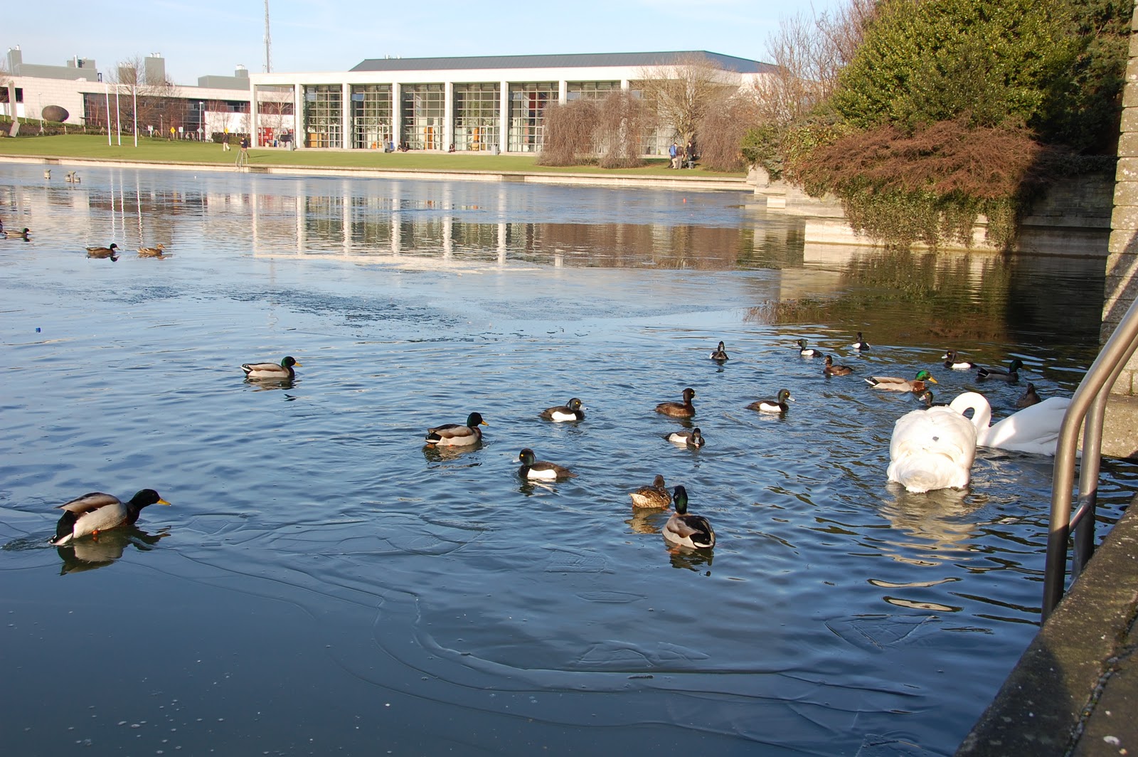 At lunch I went for a little walk and got my first sighting of a Kingfisher in ucd. I saw it twice in flight, first time the orange was really obvious, second time the electric blue was really obvious. Great to see. The Teal were still hanging around, looked to me like 4 females and 2 males.