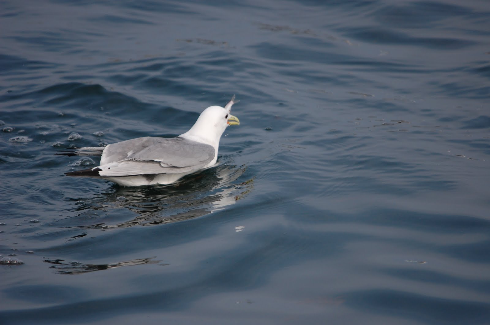 Always like seeing Gannets out to sea, with their powerful black tipped white wings and yellow head. |