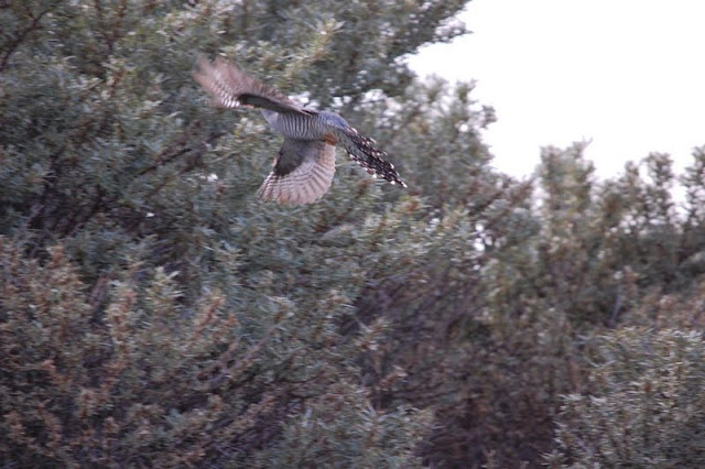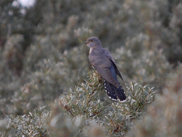 I was walking down to the Little Tern colony when I noticed a bird in flight which was too slender and had too long a tail to be anything 'usual'. Couldn't be the cuckoo J and G saw in Sunday could it???