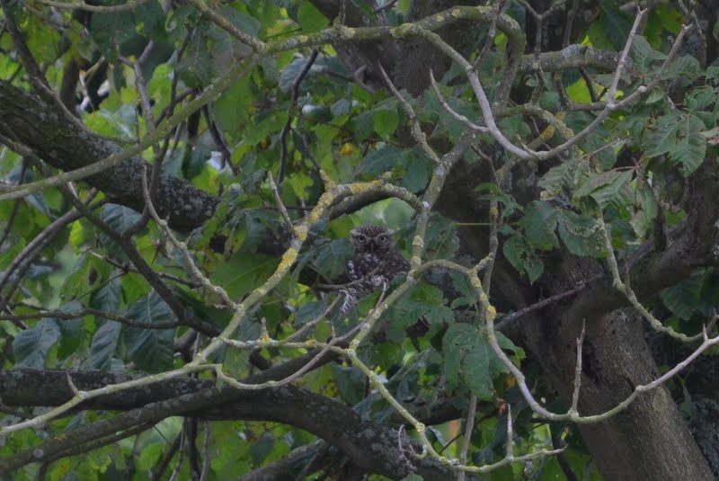 I love this photo. The Little Owl was watching me from a tree about 150m away from the fencepost I saw it on last night. |