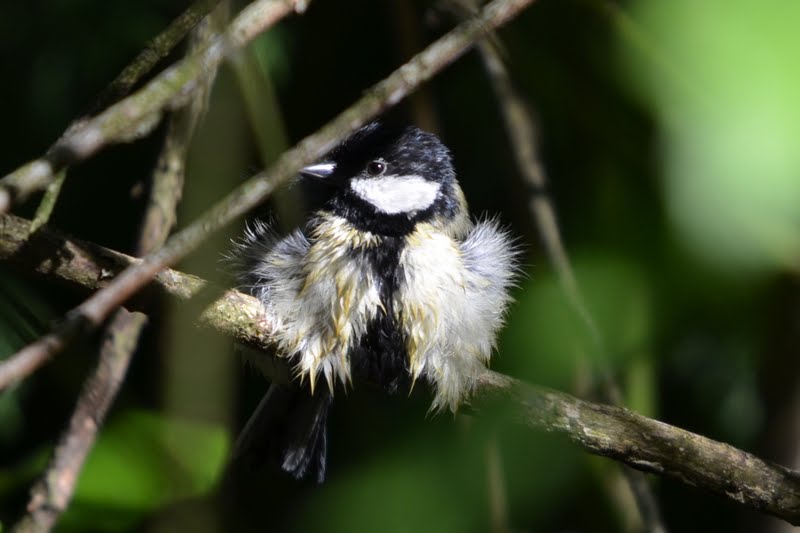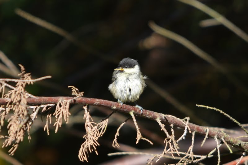 Baby Coal Tit, might be the strong sun, but it's cheek is very white in comparison to the Irish yellowy cheek of the above Coal tit |