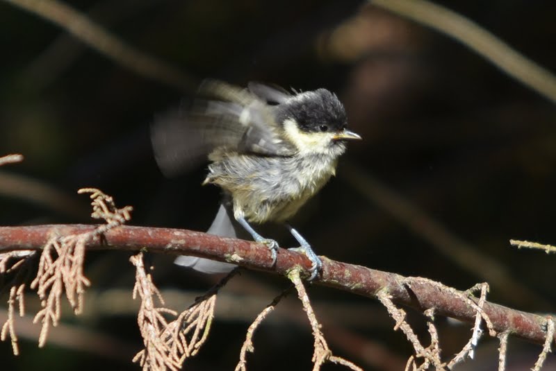 | Baby Coal Tit, might be the strong sun, but it's cheek is very white in comparison to the Irish yellowy cheek of the above Coal tit |