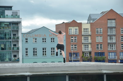 | The guy on the right, in the wetsuit, just ran and jumped into the River Liffey |