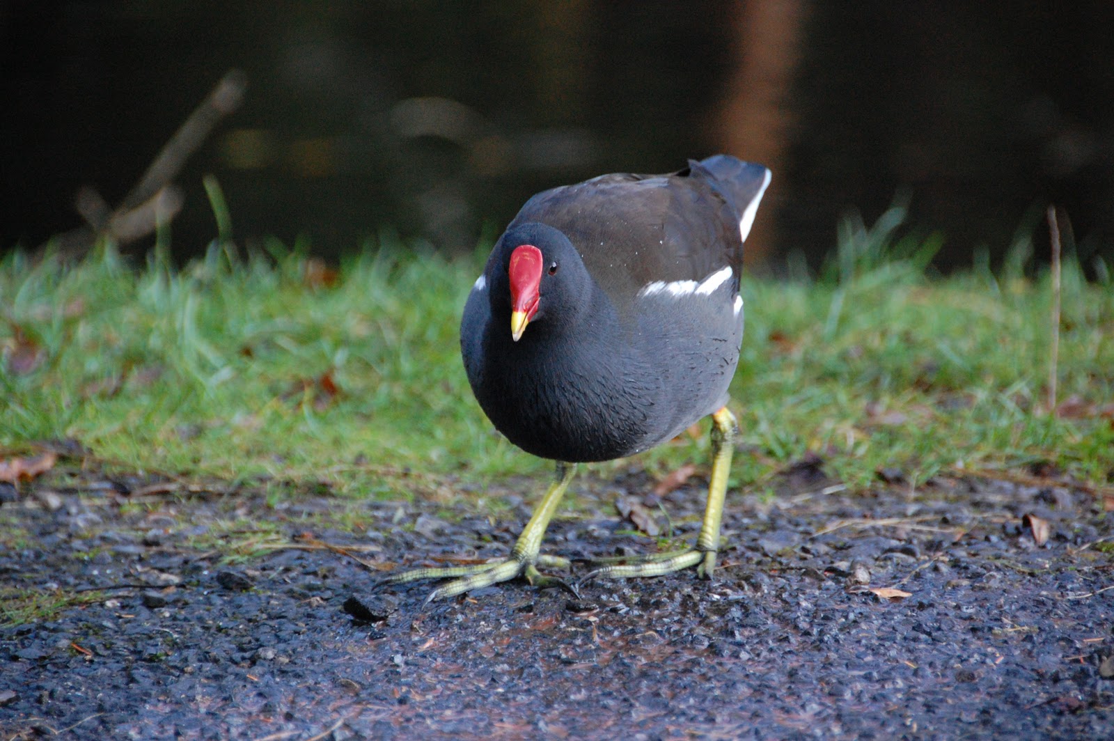 | Adult Moorhen, they're usually very shy and nervy so it's rare to see the feet so closely. |
