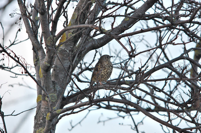 I walked around the park and saw a tree where they might be,it was full of Redwings, but no Waxwings, so I walked on. Nothing looked too promising, I walked around the park again and back to the area I originally figured they might be. Again, lots of Redwings, Song thrushes, Blackbirds and some Starlings. Then I saw these..