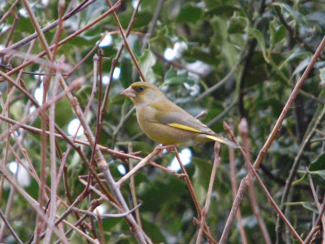 | I also saw this cross Greenfinch. Just look at that beak. |