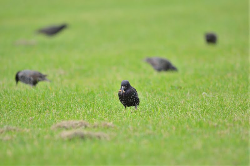 | Flock of Starlings feeding on fields in front of Roebuck |