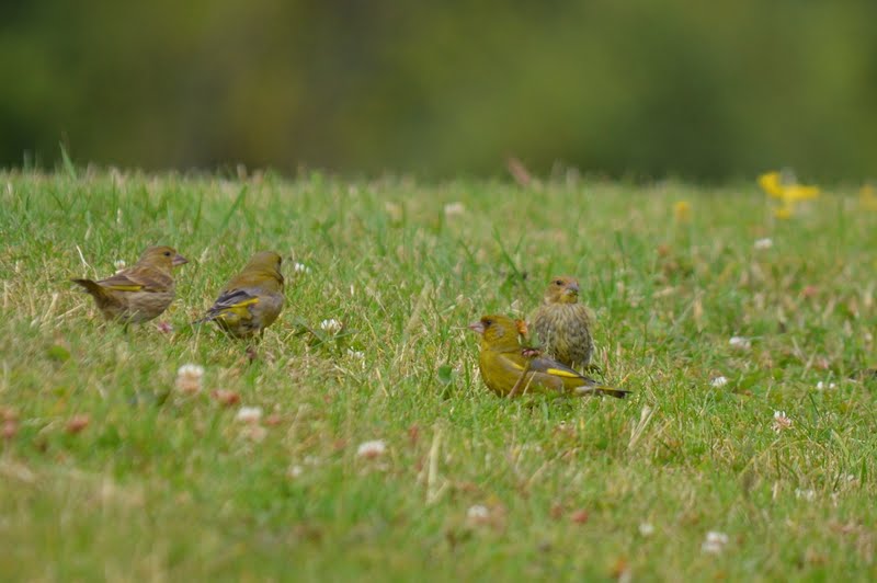 | I like this photo - Greenfinch with flash of yellow from a Goldfinch in flight, UCD (you can tell it's a Goldfinch from the white rump). |